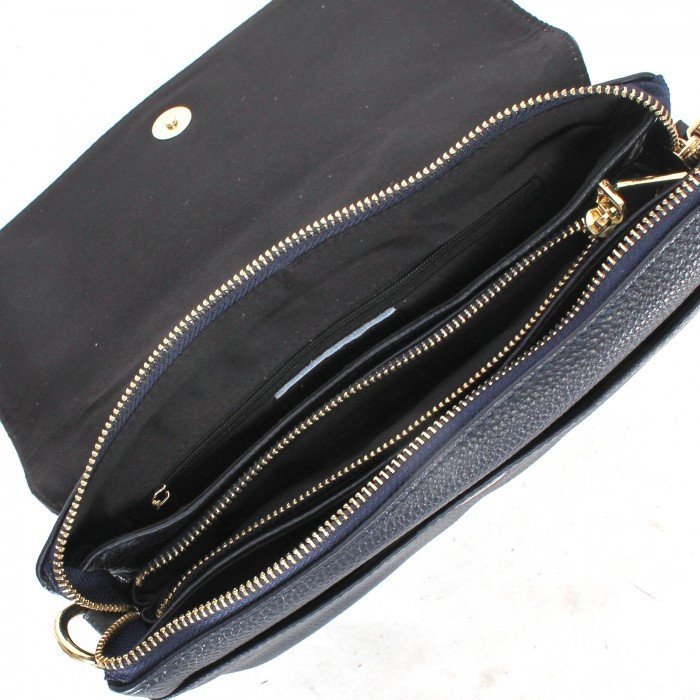 Покупала сумку голубого цвета, в целом, сумка неплохая, аккуратная, правда, задняя сторона сшита не из цельного куска кожи и ремень с тыльной стороны подбит тканью почему-то, а не полностью кожаный, это видно, когда ремень переворачивается на плече