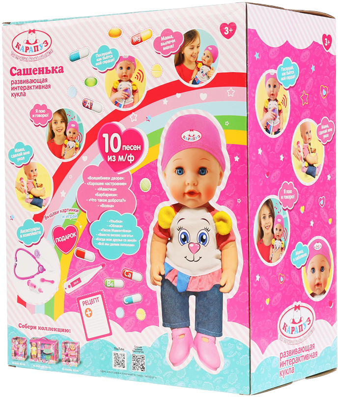 Карапуз Пупс «Сашенька»В данный момент этот товар отсутствует в продаже. Возможно, у нас найдется аналогичный или похожий товар здесь. Пупс «Сашенька» совсем как настоящий ребёнок! Пупс умеет закрывать глазки. С набором доктора можно заботиться о здоровье малышки и лечить её. Куколка любит купаться, вместе с ней водные процедуры вашего ребёнка будут проходить с удовольствием! Уложи куколку в кроватку и дай сосочку. Она закроет глазки и сладко уснёт! С такой малышкой девочка вырастет и станет самой заботливой мамой! |