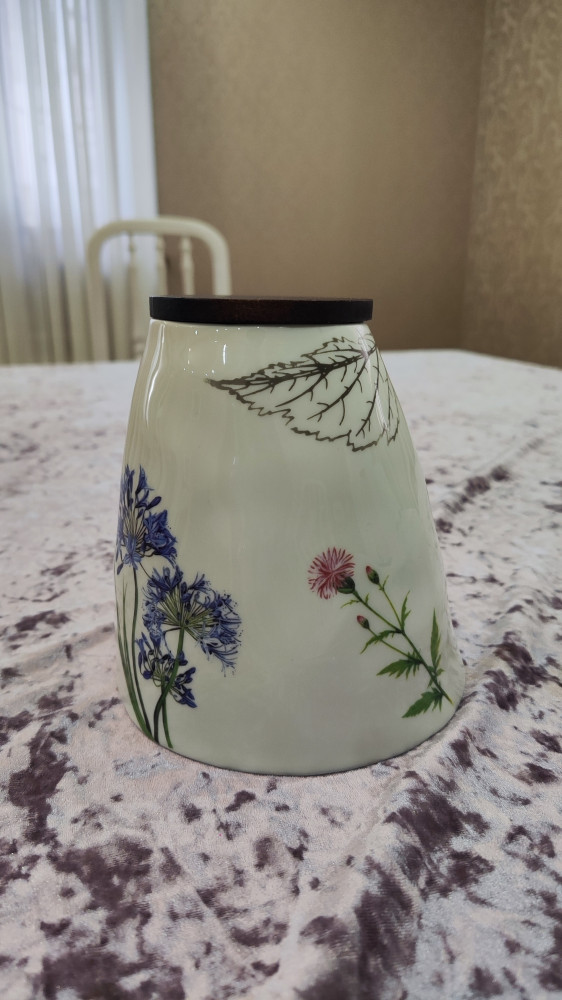 Замечательная емкость для сыпучих продуктов. Любовь с первого взгляда и прикосновенияю. Очень понравилась необычная форма баночек, изящный фарфор, деревянная крышечка, приятная на ощупь, достаточный объем. Спасибо производителю за прекрасную коллекцию и любимому магазину за доставку. Мне вся коллекция "Meadow" напомнила солнечную Италию