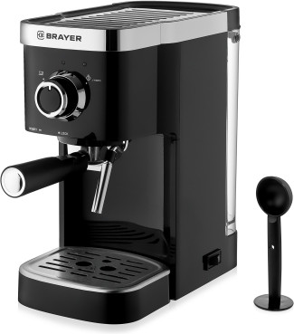 Капучинатор для взбивания молочной пены паром позволит Вам приготовить дома роскошный капучино или латте, что нравится многим ценителям разнообразия вкусов. Корпус кофеварки выполнен в стильном сочетании чёрного цвета с металликом. Он практичен, надёжен и великолепно выглядит, поэтому кофеварка BR-1100 не только приготовит для Вас и Ваших близких восхитительные напитки, но и станет великолепным подарком для всей семьи и настоящим украшением любой кухни или небольшого офиса!