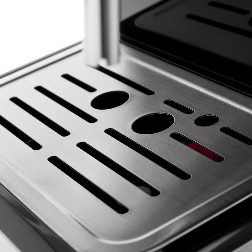 При вставлении рожка приходится поддерживать кофе-машину за корпус из-за малого веса аппарата. Отсутствует трубка подачи кипятка.