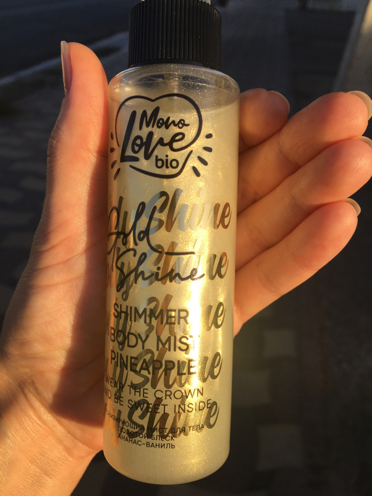 Мне понравился мист. Нежный ананасовый аромат, блеск в цвете золота, нет липкого эффекта. Использую для вечернего выхода , при освещении смотрится красиво.