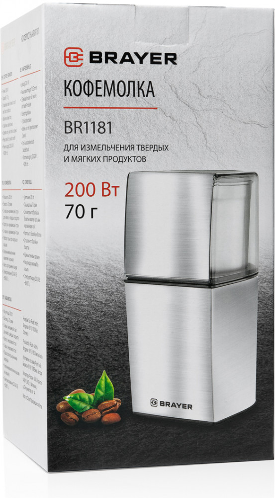 Brayer Кофемолка BR1181-35% +468 стильный дизайн нержавеющие насадки шумный мотор металлический запах