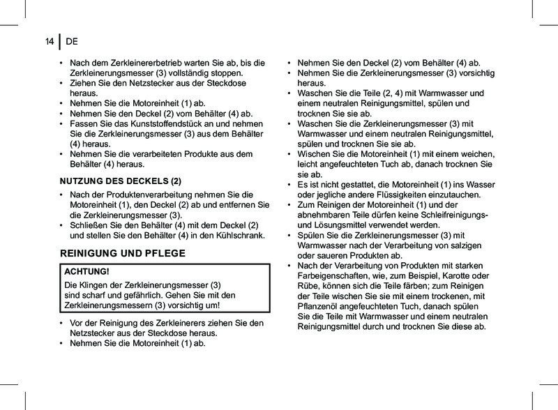 Brayer Измельчитель BR1402В данный момент этот товар отсутствует в продаже. Возможно, у нас найдется аналогичный или похожий товар здесь. Компактный измельчитель Brayer BR1402 способен быстро и эффективно нарезать необходимые продукты ножами из нержавеющей стали. |