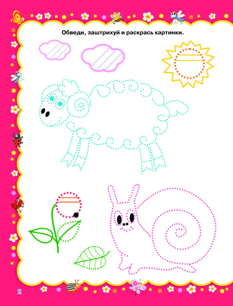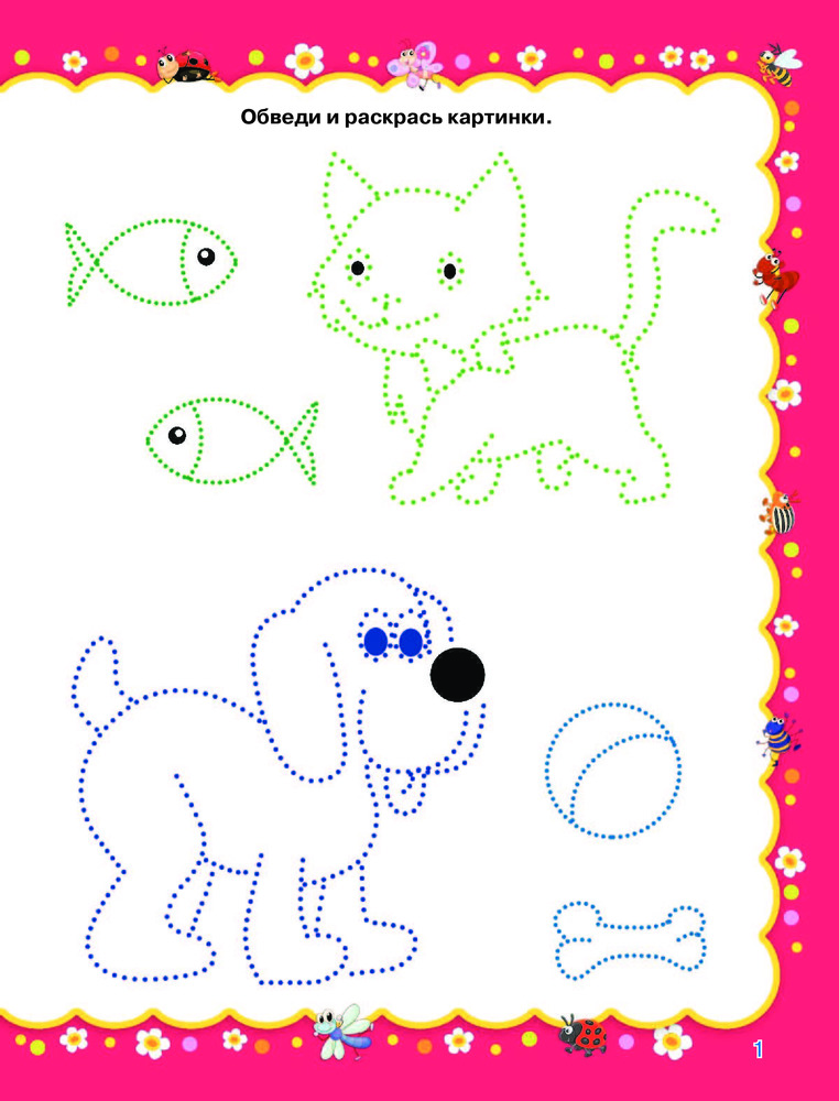 "Серия Весёлые прописи для самых маленьких Рисуем и раскрашиваем Е. Н. Лазарева, О. С. Жукова" в прочной красивой картонной обложке Страницы белые, по краям страниц - кайма (просто для красоты страниц). На каждой странице по несколько рисунков, выполненных точками, которые надо обвести ребёнку, чтобы картинка получилась целая. Рисунки с точками расположены по обеим сторонам страничек. Все рисунки с точками для детей интересные. Например, ёжик, котёнок, щенок, лягушка, птичка, рыбка и т.д. Отличное пособие для детей!