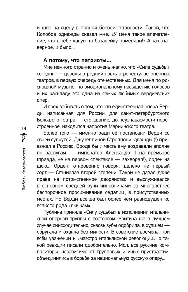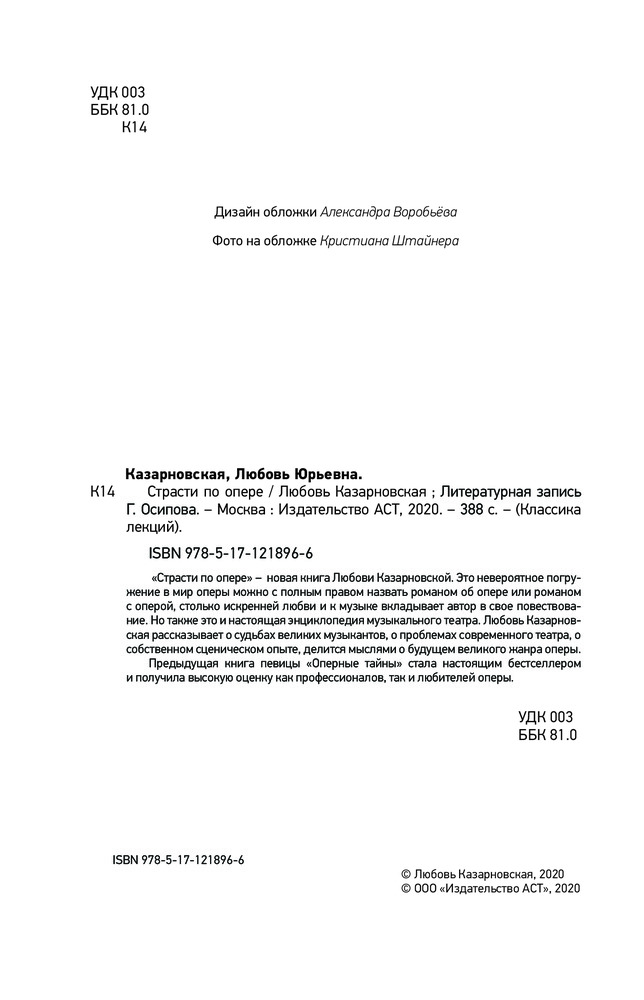 Страсти по опереВ данный момент этот товар отсутствует в продаже. Возможно, у нас найдется аналогичный или похожий товар здесь. Серия: Классика лекций Любовь Юрьевна — оперная певица и блестящая, выдающаяся личность, украсившая своим присутствием множество ТВ- и радио- проектов, просто фантастически владеющая даром слова. Ее многогранный музыкальный талант был оценен такими выдающимися мастерами как Г. фон Караян, Л. Берстайн, К. Клайбер, Ф Дзеффирелли, К. Аббадо. «Страсти по опере» — Новая книга Любови Казарновской является невероятным погружением в мир оперы. Ее можно с полным правом назвать романом об опере или даже романом с оперой: столько любви и энциклопедических знаний автор вкладывает в свою книгу. Любовь Казарновская рассказывает о судьбах великих музыкантов, о проблемах современного театра, о собственном сценическом опыте, делится мыслями о будущем великого жанра оперы. Предыдущая книга певицы «Оперные тайны» стала настоящим бестселлером и получила высокую оценку как профессионалов, так и любителей оперы. |