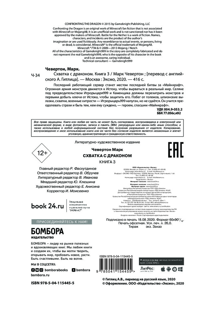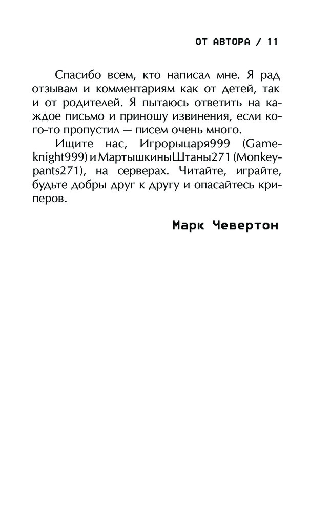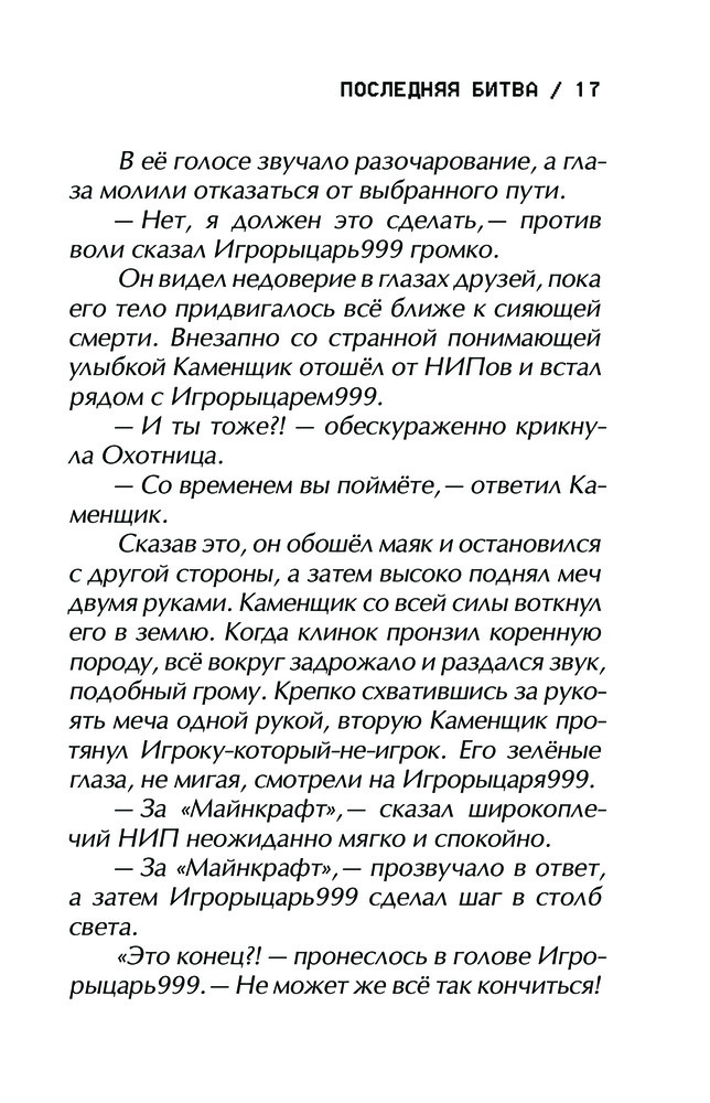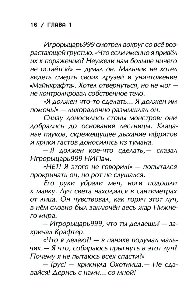 💳 Оплатить за товар можно при получении 🇰🇿 Есть бесплатная доставка по Казахстану 🎁 Копите бонусы с каждой покупки Серия: Майнкрафт. Приключения Игрорыцаря Последний работающий сервер станет местом последней битвы за «Майнкрафт». Огромная армия монстров движется к Истоку, чтобы вырваться в реальный мир. Селяне под предводительством Игрорыцаря999 и Каменщика должны перехитрить монстров и первыми добыть ключи от Истока, чтобы защитить его. Побег от големов, шпионские вылазки, схватки, военные хитрости — Игрорыцарь999 напуган, но не сдаётся. Он учится преодолевать страхи и быть тем, кем ему суждено, — героем, спасшим «Майнкрафт». |