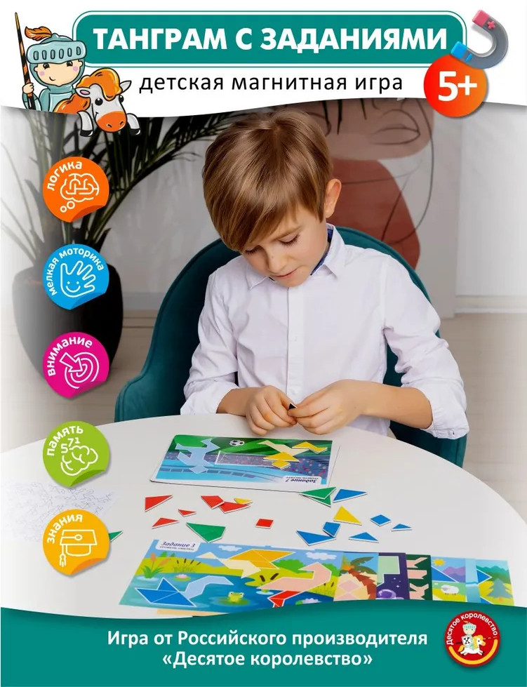 Десятое королевство Игра магнитная «Танграм»-25% +61 интересные задания четыре цвета игра хорошая удовольствие детей разноцветные комплекты