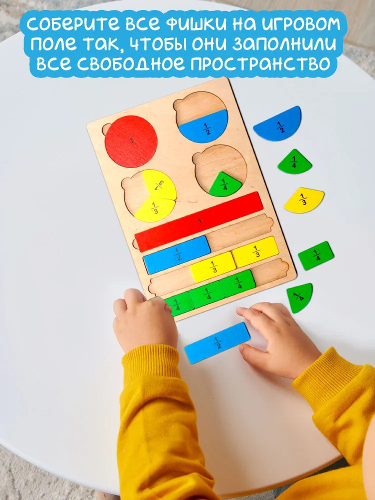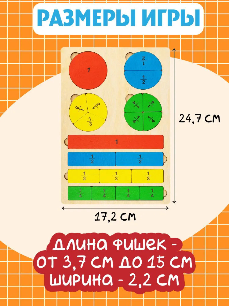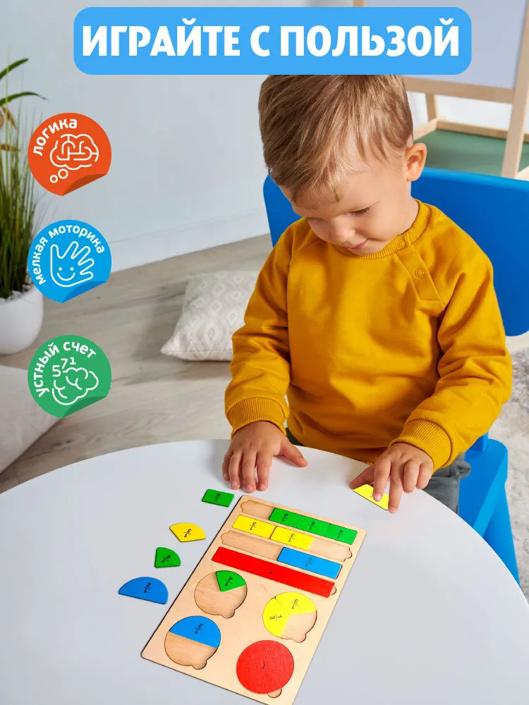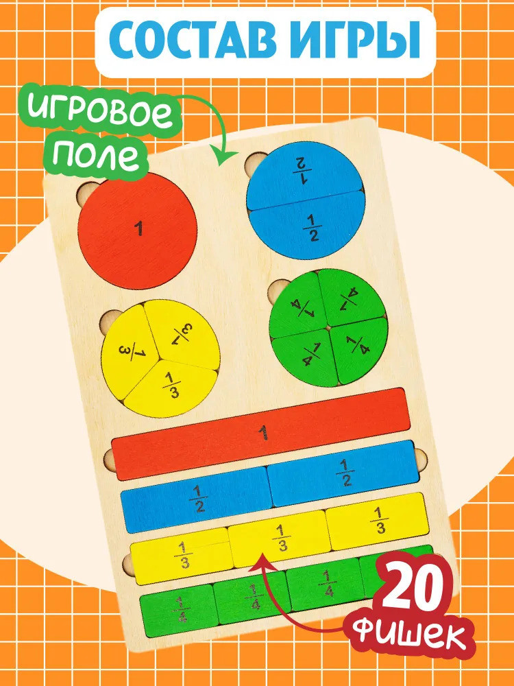 💳 Оплатить за товар можно при получении 🇰🇿 Есть бесплатная доставка по Казахстану от 1 дня 🎁 Копите бонусы с каждой покупки Развивающий деревянный пазл «Часть и целое» помогает освоить одно из непростых для восприятия у детей математических понятий — дроби — в игровой форме. Игра познакомит ребёнка с понятием дроби и научит делить целое на различное количество частей. Сравнивая количество сегментов, на которые разбиты полоски-пазлы, с изображёнными на них числовыми значениями, малыш сможет понять, что такое дробь и как она образуется. |