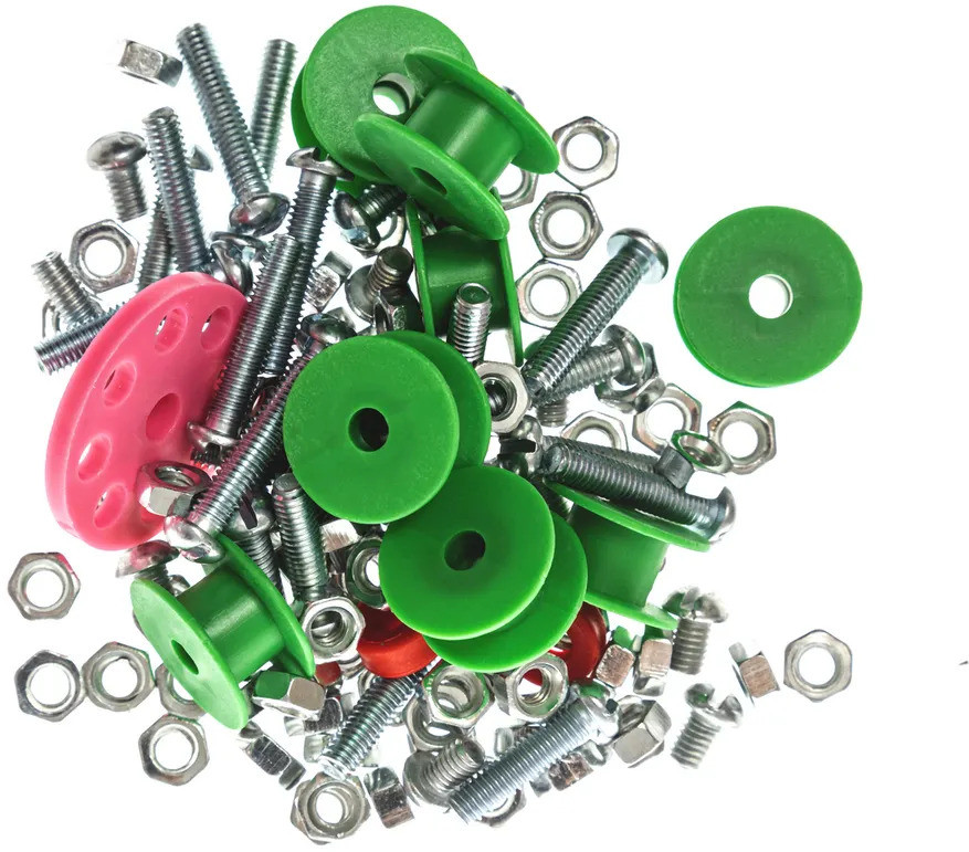 Детали упакованы просто по пакетикам, без возможности распределения деталей по разным отсекам