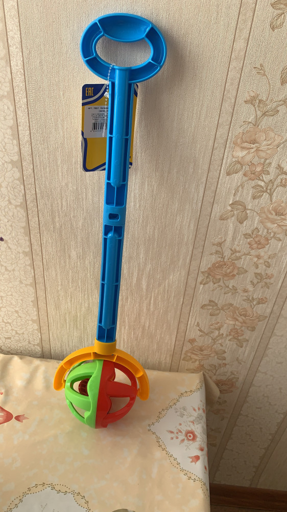 Отличная каталка, сын с ней часто ходит! Качество замечательное, яркий, прочный пластик, без запаха, игрушка полностью соответствует фото!