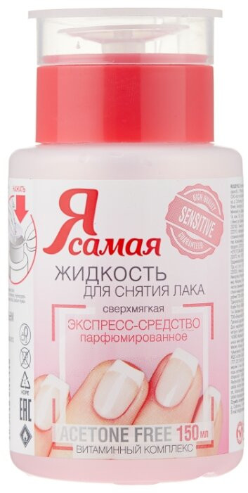 Я Самая Средство для снятия лака «Sensitive»-20% +19 Удобная ёмкость Удобный дозатор Удобная помпа Удобно пользоваться