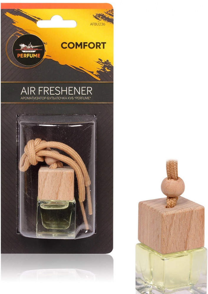 Ароматизатор подвесной бутылочка с деревянной крышкой AIRLINE Perfume 6 мл COMFORT — освежитель предназначен для ароматизации воздуха в автомобиле и помещении. Профессиональная линейка ароматизаторов воздуха на основе парфюмерии не оставит равнодушными автовладельца и пассажиров. Ароматизатор воздуха содержит гелиевые шарики с концентрированными жидкими духами из натуральных эфирных масел. Нейтральный свежий аромат относится к категории унисекс, основные ноты корицы, молока, сандала и французской ванили.