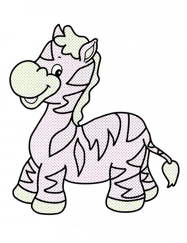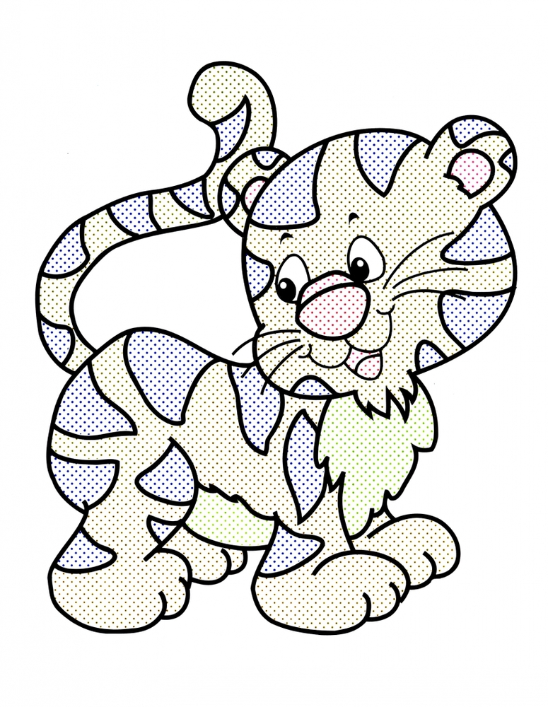 На крупные картинки с толстыми контурами нанесён узор из мелких цветных точек. Если провести мокрой кисточкой по картинке, она окрасится в разные цвета — совершенно неожиданные! Синий может стать розовым, красный — жёлтым, и наблюдать за этим цветопревращением ужасно увлекательно!