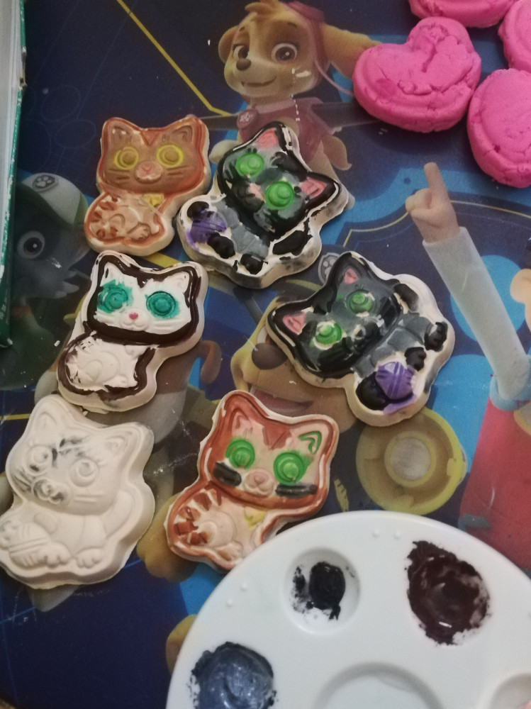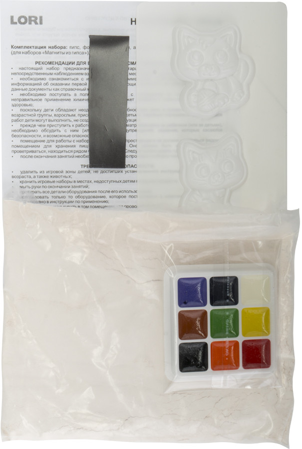 Отличный набор. Дочь в восторге. Из всего количества гипса у нас получилось 6 кошечек. Единственное магнит лучше еще раз проклеить клеем для надёжности. У нас 1 магнит отклеился и кошечка упала и сломалась.