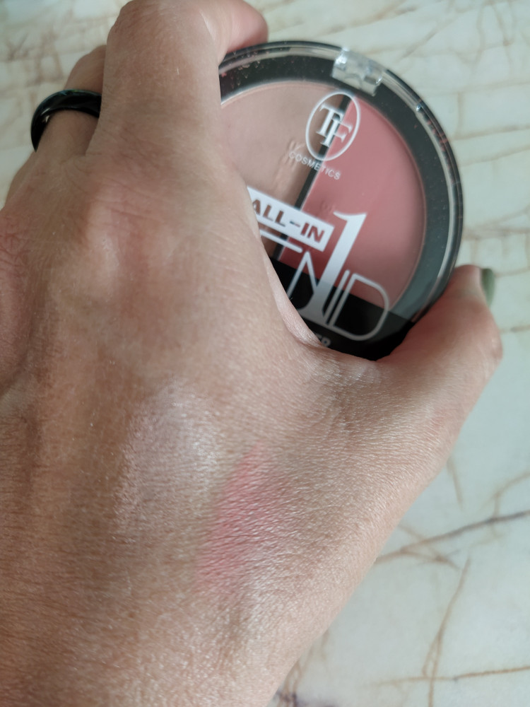 Румяна и хайлайтер 2 в 1 очень удобно, тем более она не такого большого размера. Мне понравился не приторный оттенок румян. Только хайлайтер чуток слабоват, но он тоже хороший