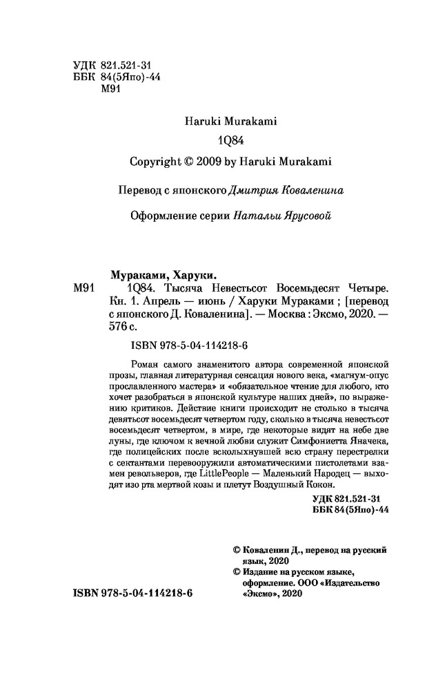 1Q84. Тысяча Невестьсот Восемьдесят Четыре. Книга 1. Апрель — июнь-20% +65 интересно качество цена автор продолжение