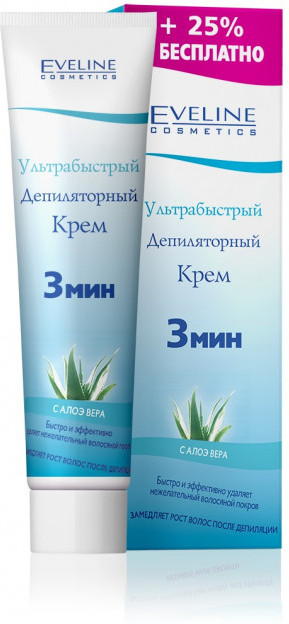 Eveline Cosmetics Крем депиляторный ультрабыстрый с экстрактом алое-20% +45 эффективный шпатель плохо удаляет