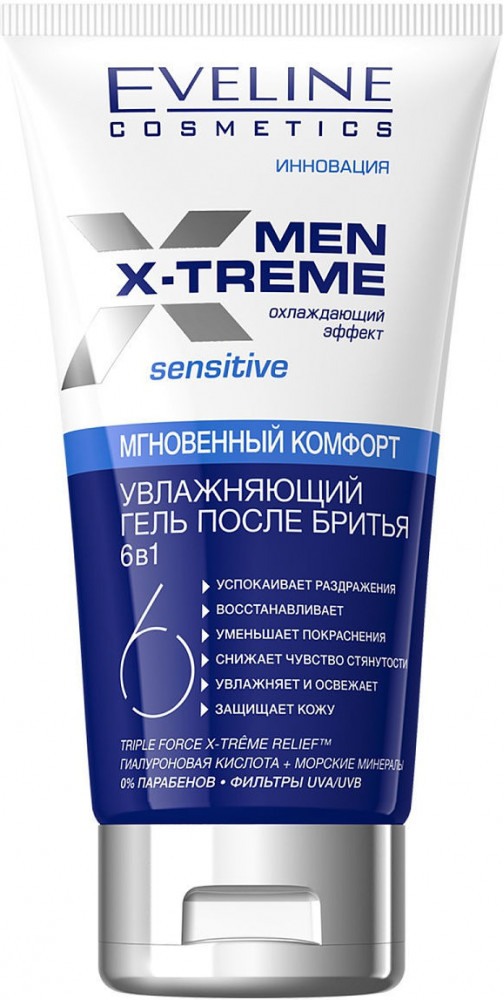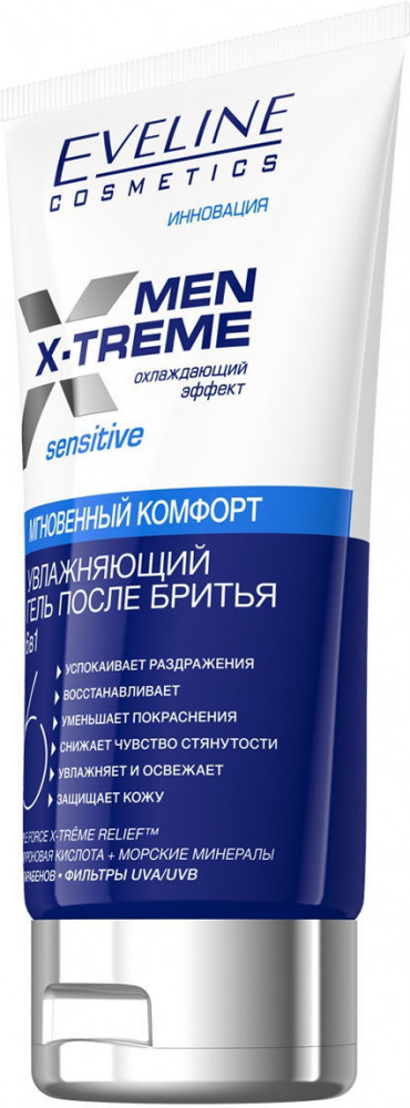 Men X-Treme Гель после бритья 6 в 1-20% +13 снимает раздражение освежает приятный запах комфорт