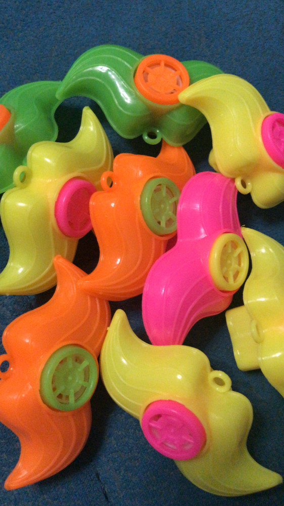 Интересные свистки. Купила детям сразу 3 пачки. Из 6 шт, один оказался изначально нерабочим. Но тем не менее дети играют с удовольствием.