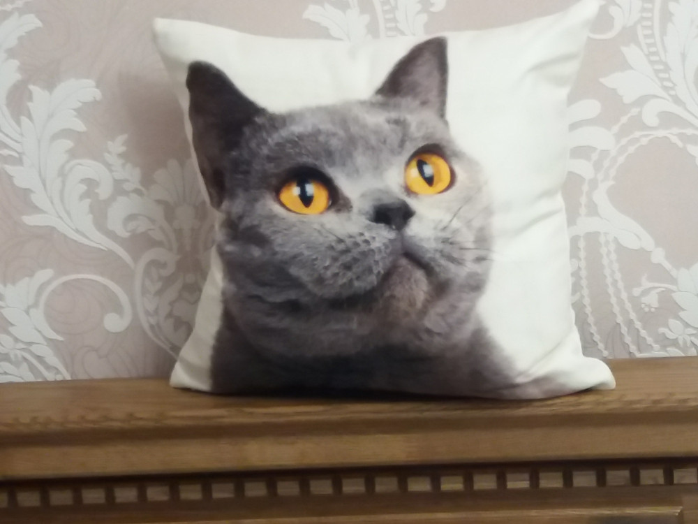 Мне так нравится эта наволочка, что не могу удержаться и не оставить еще раз отзыв!!! Каждый день любуюсь и радуется "глаз",глядя на нее)) Рисунок на столько реально выглядит, когда надета наволочка на подушку, что кажется будто живой котик смотрит внимательно на кого то! Хочу еще такую же ,но немного с другим рисунком(с котятами), жду когда появятся в наличии.