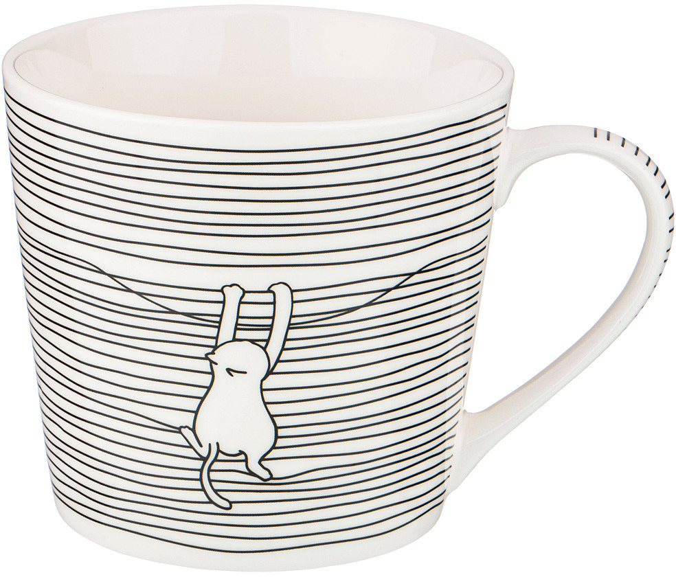 Чудесная белая кружка,хорошо отмывается изнутри,не оставляет следов от кофе или чая.Не сильно лёгкая, но и не тяжёлая.Прекрасно поднимает настроение котик .
