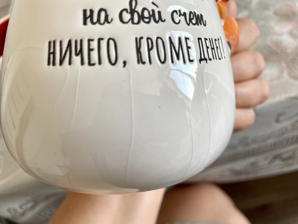кружечку купила из-за надписи и милого оформления, пить не особо удобно, но долго держит тепло. Кипяток не наливала специально, т.к. тут писали что трескается. От горячей воды ничего не трескалось, надо просто чуток подождать, не наливать только закипевший чайник. Всё остальное супер. Коробочка и оформление на подарок просто чудо.