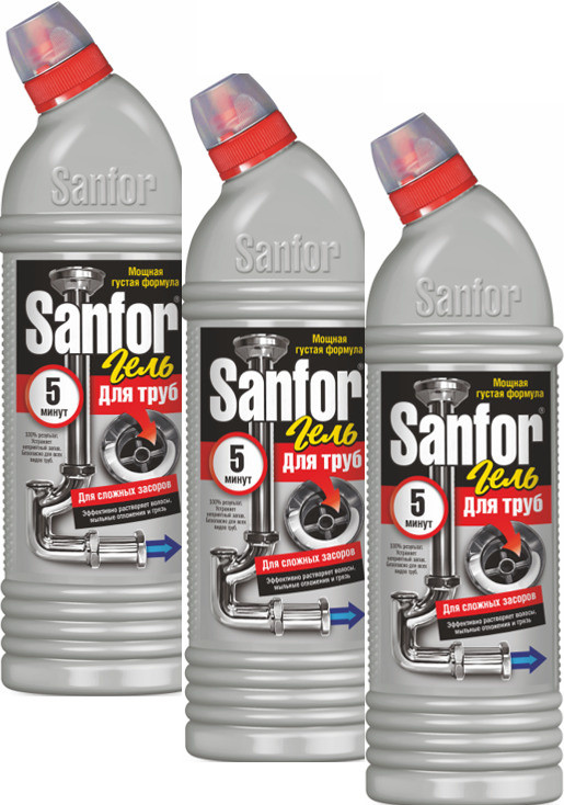 Sanfor Средство для прочистки труб-25% +12 устраняет засоры удаляет волосы удаляет жир универсальное применение очищает резиновые детали