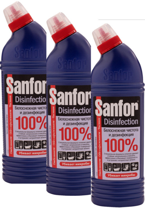 Sanfor Средство дезинфицирующее «Универсал»В данный момент этот товар отсутствует в продаже. Возможно, у нас найдется аналогичный или похожий товар здесь. Средство санитарно-гигиеническое «Sanfor Универсал», летний дождь. Одно средство «Sanfor Универсал» заменит 10 специальных чистящих средств для разных поверхностей и областей применения легкой быстро отчистит раковины, ванны и душевые кабины, унитазы, сливы и водостоки, керамическую плитку, любые твердые моющиеся напольные покрытия, настенные панели, моющиеся обои, бытовую технику. Подходит для уборки и дезинфекции туалетов для животных. Эффективно устраняет серый налет, плесень, жир, мыльные потеки, въевшиеся пятна от продуктов питания и другие загрязнения. Благодаря загущенной формуле экономичен в расходе. Обеспечивает свежий запах. Обладает антимикробными свойствами. |