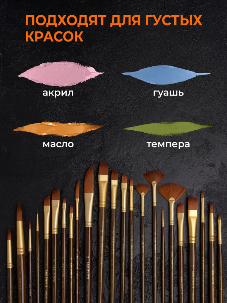💳 Оплатить за товар можно при получении 🇰🇿 Есть бесплатная доставка по Казахстану от 1 дня 🎁 Копите бонусы с каждой покупки Серия: Claude Кисти серии Claude изготовлены из синтетики золотистого цвета (Shining golden synthetic) имитирующей ворс колонка. Это ворс средней жесткости, который отлично подходит для густых красок таких как масло, акрил, гуашь, темпера. Кисти выполнены в благородной цветовой гамме. Матовая золотая втулка, коричневый прозрачный лак и лаконичная маркировка делают эти кисти не только надежным художественным инструментом, но и красивым аксессуаром. Кисть держит свою форму даже при частом использовании, ворс прочно закреплен, а втулка не расшатывается со временем. Ручка кисти оптимальной средней длины — 18 см. Длина ворса (выставка) короткая. Номер кисти соответствует диаметру в мм. |