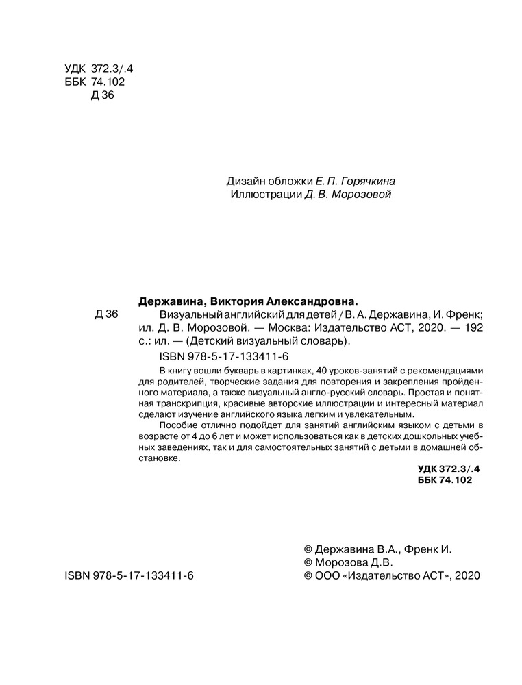 💳 Оплатить за товар можно при получении 🇰🇿 Есть бесплатная доставка по Казахстану 🎁 Копите бонусы с каждой покупки Серия: Детский визуальный словарь В книгу вошли букварь в картинках, 40 уроков-занятий с рекомендациями для родителей, творческие задания для повторения и закрепления пройденного материала, а также визуальный англо-русский словарь. Простая и понятная транскрипция, красивые авторские иллюстрации и интересный материал сделают изучение английского языка легким и увлекательным. |