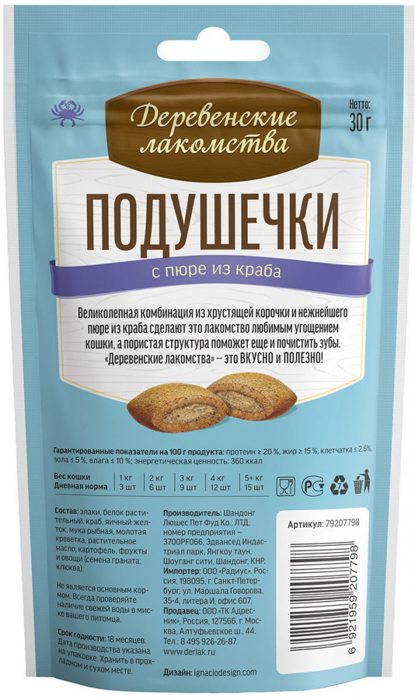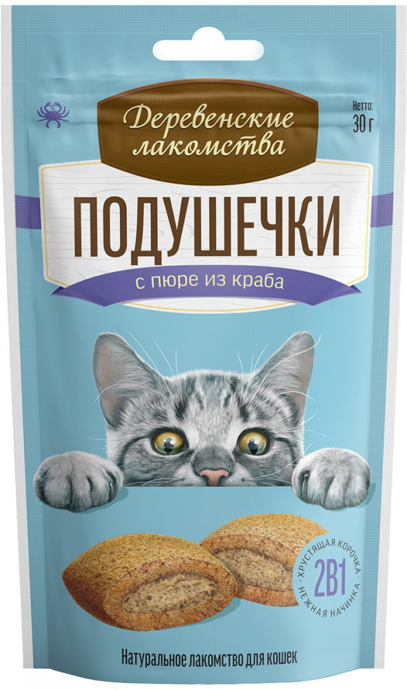 Деревенские лакомства Лакомство для кошек «Подушечки с пюре из краба»