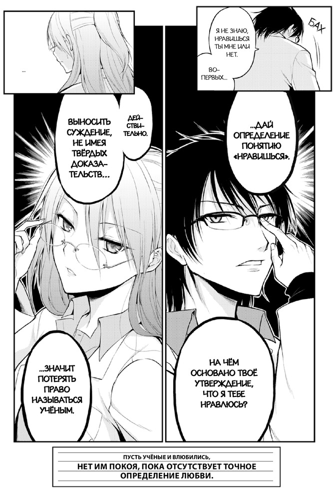 Серия: Манга. Научное доказательство любви Начинается любовный эксперимент, разворачивающийся в университетской лаборатории, где собираются учёные с богатой индивидуальностью, достойные любви. |