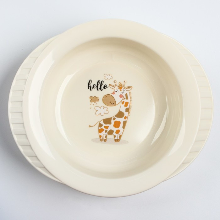 Хорошая тарелка по отличной цене! Понятно конечно, что лучше стеклянная, но малыш учиться кушать и иногда роняет тарелки на пол. Данная тарелка оказалась не хуже расхваленной Avent (у которой треснул ободок от падения с высоты детского стульчика) . Рисунок нанесен под пленкой. мытьё в посудомоечной машине на верхней полке выдерживает. На коробке стоит значок, что можно мыть в посудомоечной машине. Спасибо большое, что по моей просьбе положили тарелочку для мальчика, нам досталась с бегемотом))).