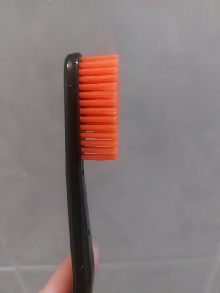 с первого использования оправдала свои ожидания, уровень жесткости самый раз (не сильно жесткая), довольно хорошо охватывает дальние зубы. Ощущение будто щеткой по обуви)) очищает отлично