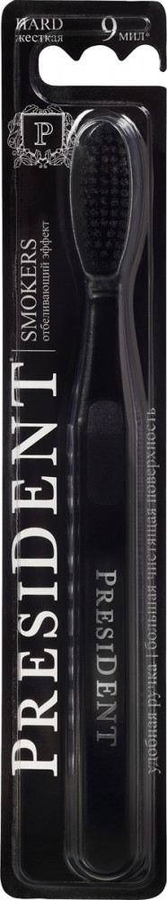 President Щетка зубная «Smokers»большая головка хорошо очищает плотная щетина удобная ручка В данный момент этот товар отсутствует в продаже. Возможно, у нас найдется аналогичный или похожий товар здесь. Зубная щетка President Smokers — зубная щетка для интенсивного очищения. Показатель жесткости: жесткая, 9 мил (Hard). Большая головка обеспечивает быстрое очищение внешних, внутренних и жевательных участков зубного ряда. Закругленные нейлоновые щетинки Medex деликатно полируют зубную эмаль и не травмируют десны. Позволяет эффективно очищать никотиновый и пигментированный налет, а также предотвращает образование зубного камня. |