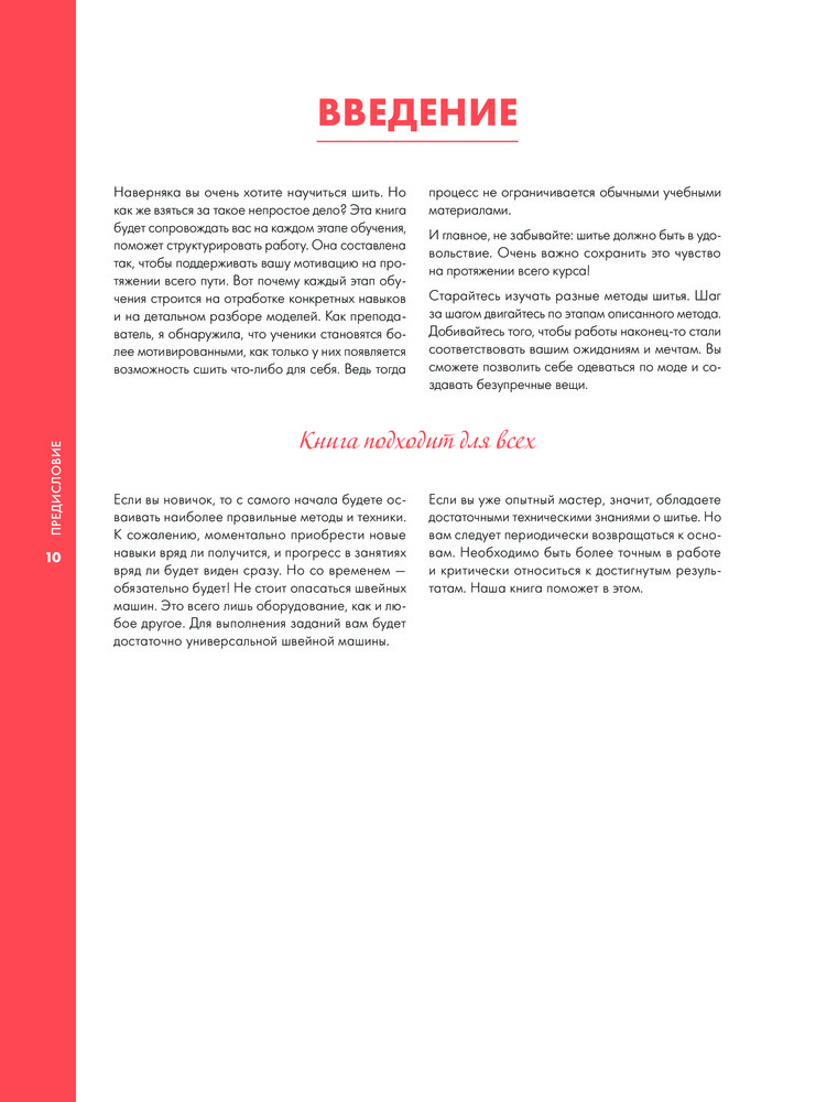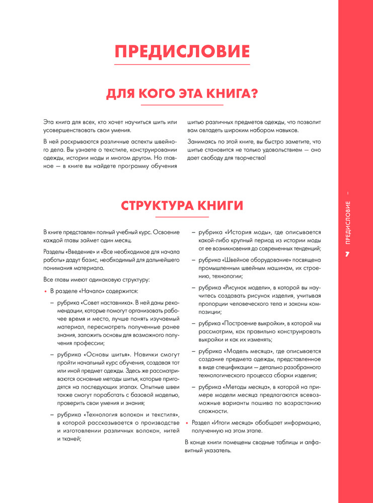 По книге легко и удобно заниматься самостоятельно. Вы будете отслеживать свой прогресс в обучении, проходя шаг за шагом 9 практических блоков, рассчитанных на месяц. Каждый блок содержит: теоретический раздел с советами и рекомендациями специалистов, базовую модель, на примере которой вы будете постигать новый материал, блок изучения нитей и тканей, раздел по истории моды, уроки по швейному эскизу, стилю и дизайну, курс конструирования и моделирования выкроек, модель месяца с полной раскладкой в виде заполненного швейного блокнот со всеми необходимыми данными и параметрами. И наконец резюме с контрольными вопросами и упражнениями, чтобы подвести итог пройденной за месяц работы и оценить свой прогресс. Вы увидите насколько быстро будут расти ваши знания, навыки и умения, а шитье станет приносить огромное удовольствие. Эта книга поможет вам полностью раскрыть свой творческий потенциал! |