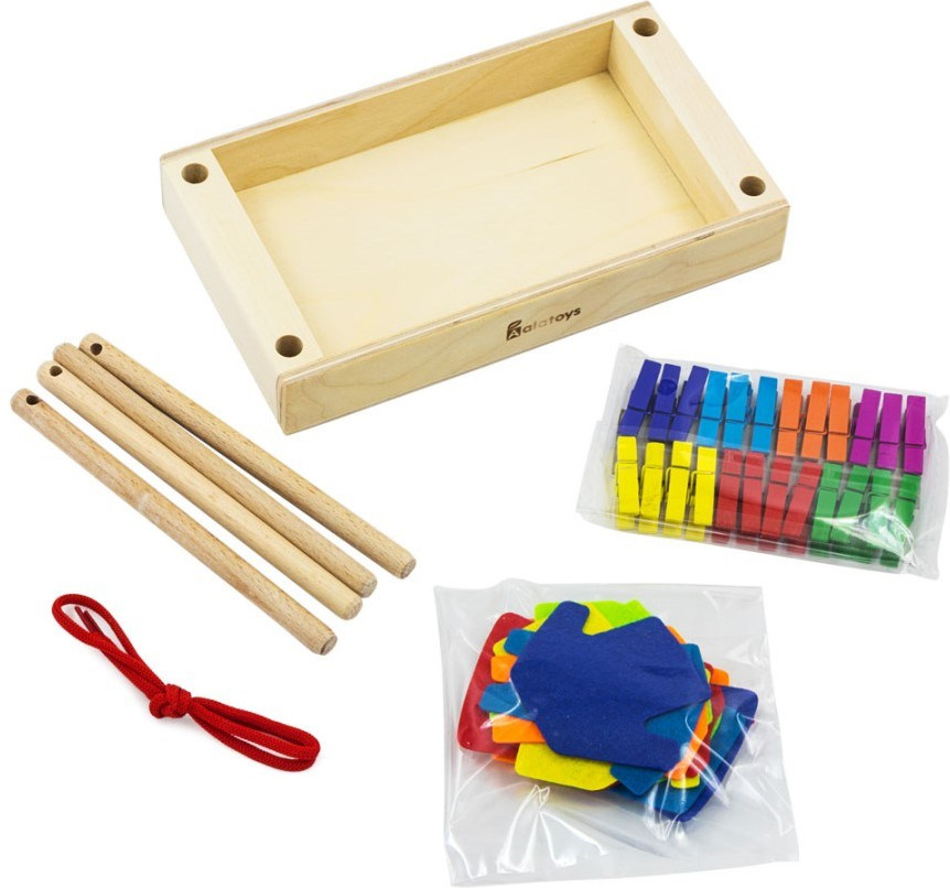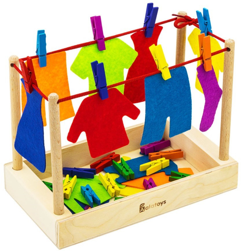 Alatoys Игра «Большая Стирка»В данный момент этот товар отсутствует в продаже. Возможно, у нас найдется аналогичный или похожий товар здесь. Большая стирка от «Алатойс» — забавная игра для детей. Помогите ребенку собрать конструкцию с «бельевой» веревкой и рассыпьте перед ним разноцветные фетровые предметы одежды и деревянные прищепки. Ребенку будет полезно и интересно познакомиться с разными материалами, цветами и формами. А также помочь взрослому с развешиванием «белья». Попросите маленького помощника использовать детальки заданного цвета или нужной формы. Придумайте свою веселую игру — она поможет в развитии мелкой моторики, цветового и тактильного восприятия, а также принесет массу положительных эмоций ребенку. |