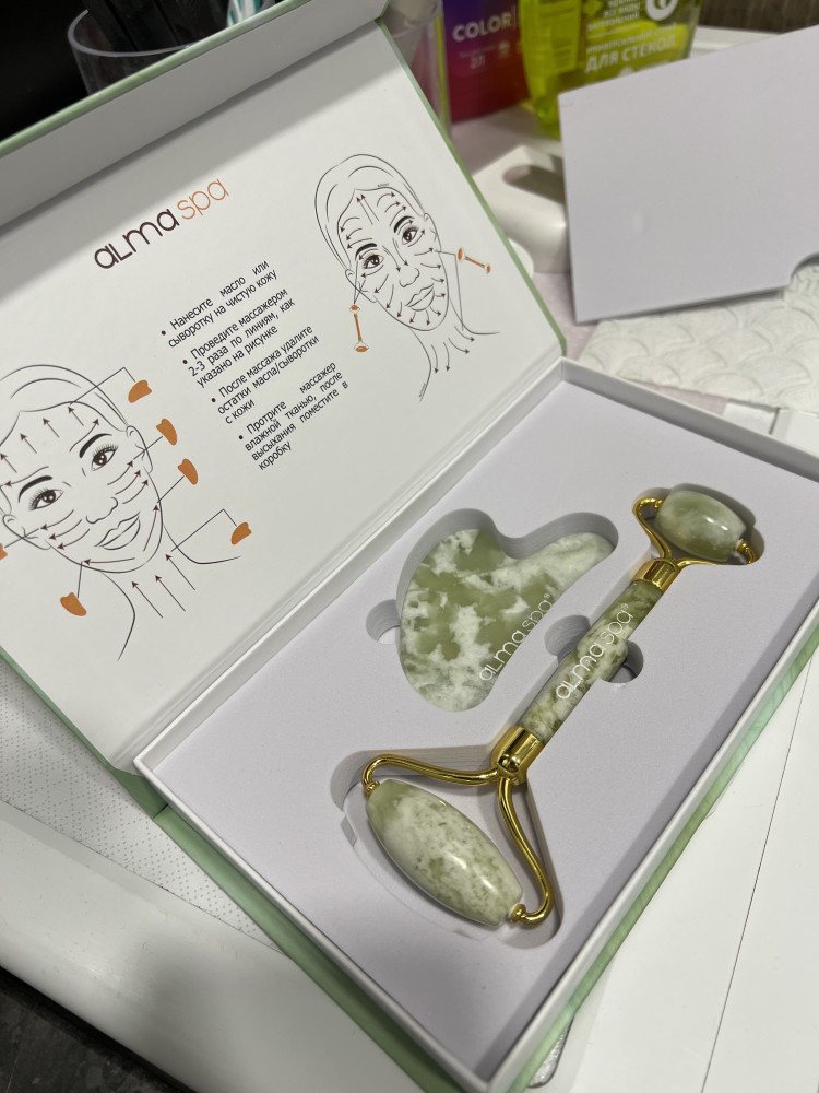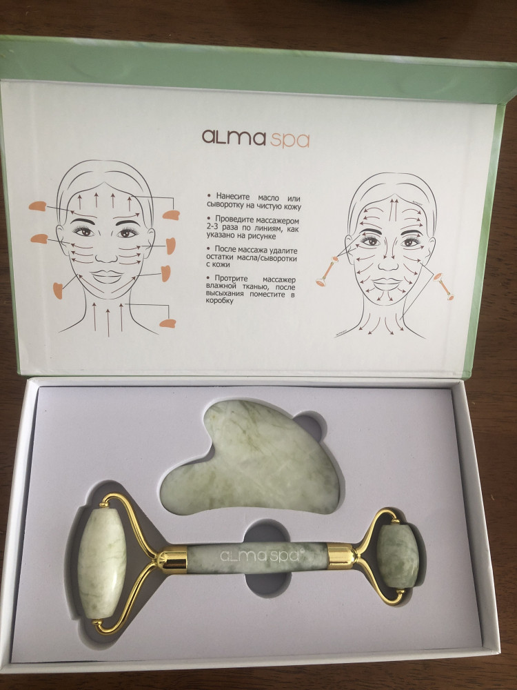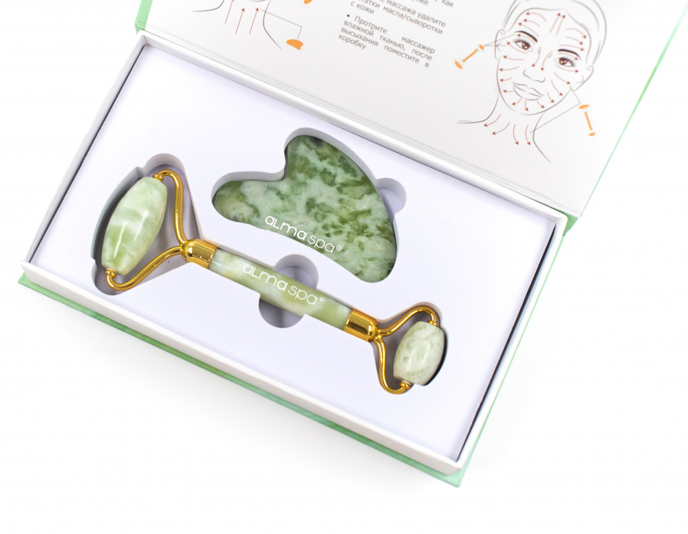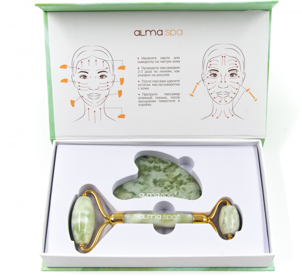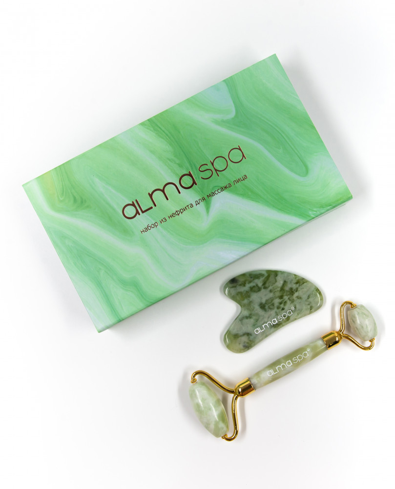 ALMASPA Набор для массажа лица из нефрита+100 высокое качество без сколов хорошая упаковка для подарка
