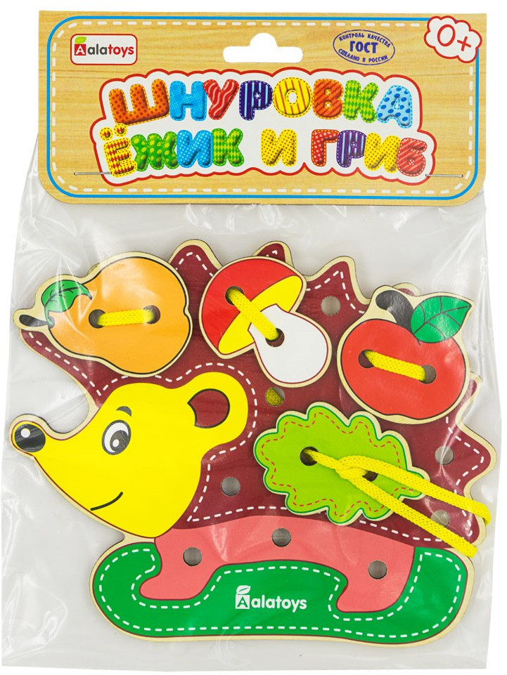 Alatoys Шнуровка «Ёжик»В данный момент этот товар отсутствует в продаже. Возможно, у нас найдется аналогичный или похожий товар здесь. Шнуровка — игрушка, развивающая навыки шнурования и мелкую моторику ребёнка. Шнуровка «Ёжик» от «Алатойс» представляет собой красочную основу в виде ёжика и четыре красочные фигурки. Задача ребёнка — аккуратно пришнуровать фигурки. Придумайте интересную историю с героями шнуровки, чтобы учиться шнуровать стало ещё интереснее! |
