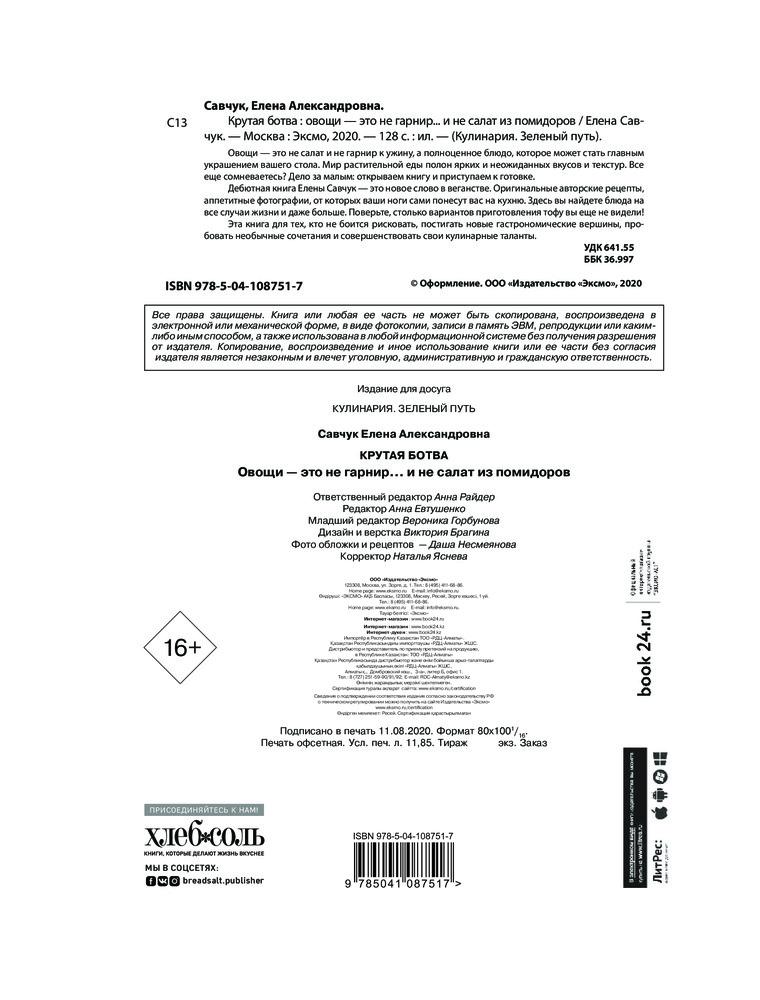 💳 Оплатить за товар можно при получении 🇰🇿 Есть бесплатная доставка по Казахстану от 1 дня 🎁 Копите бонусы с каждой покупки Серия: Кулинария. Зеленый путь Овощи — это не салат и не гарнир к ужину, а полноценное блюдо, которое может стать главным украшением вашего стола. Мир растительной еды полон ярких и неожиданных вкусов и текстур. Все еще сомневаетесь? Дело за малым: открываем книгу и приступаем к готовке. |