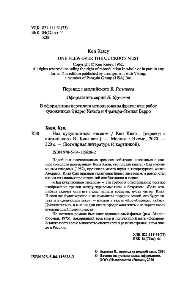Подобно многочисленным громким событиям, связанным с именем «веселого проказника» Кена Кизи, его первая книга «Над кукушкиным гнездом» (1962) произвела много шума в литературной жизни Америки. Кизи был признан талантливейшим писателем, а роман стал одним из главных произведений для битников и хиппи.