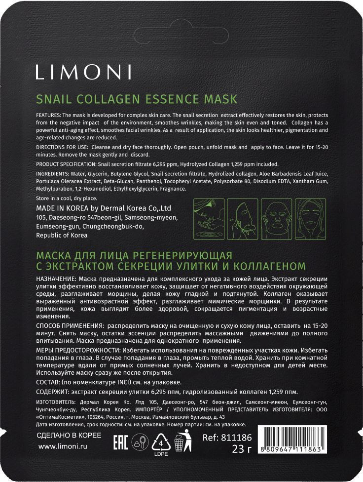 Limoni Маска для лица тканевая с экстрактом секреции улитки и коллагеном