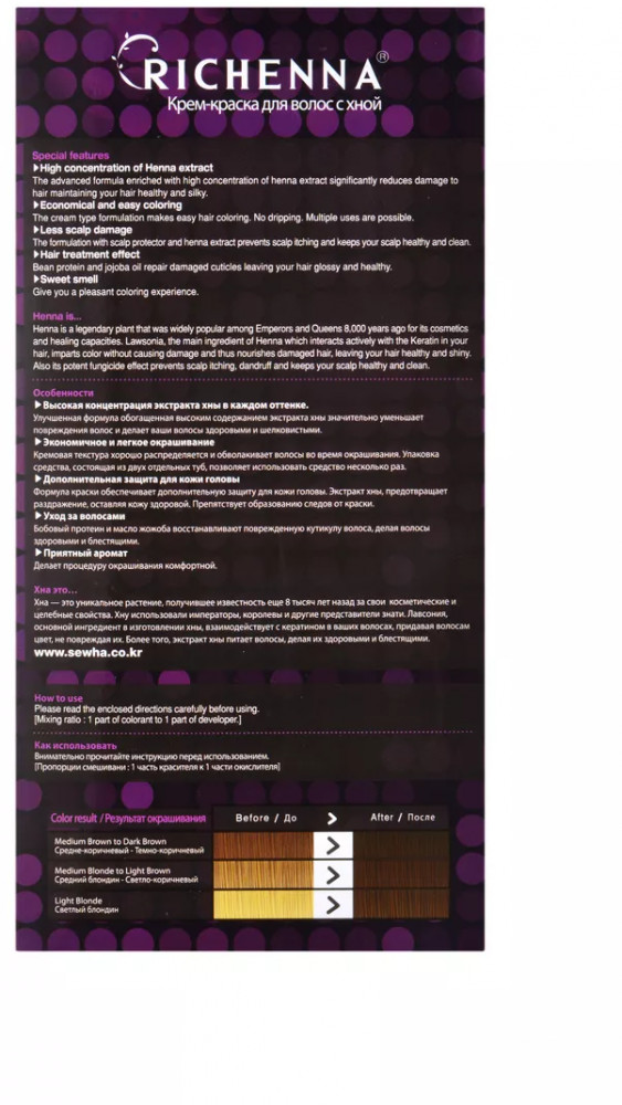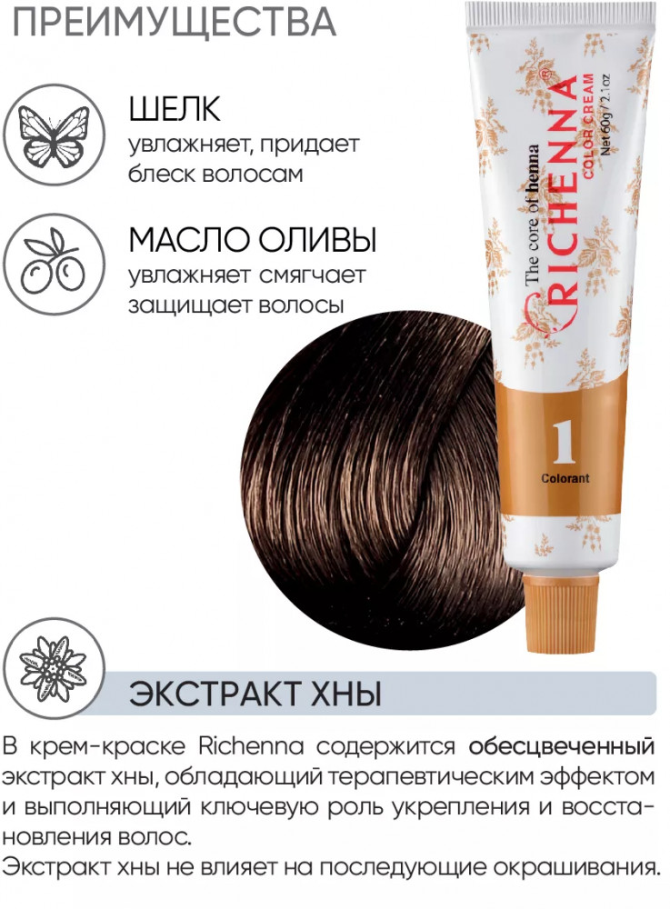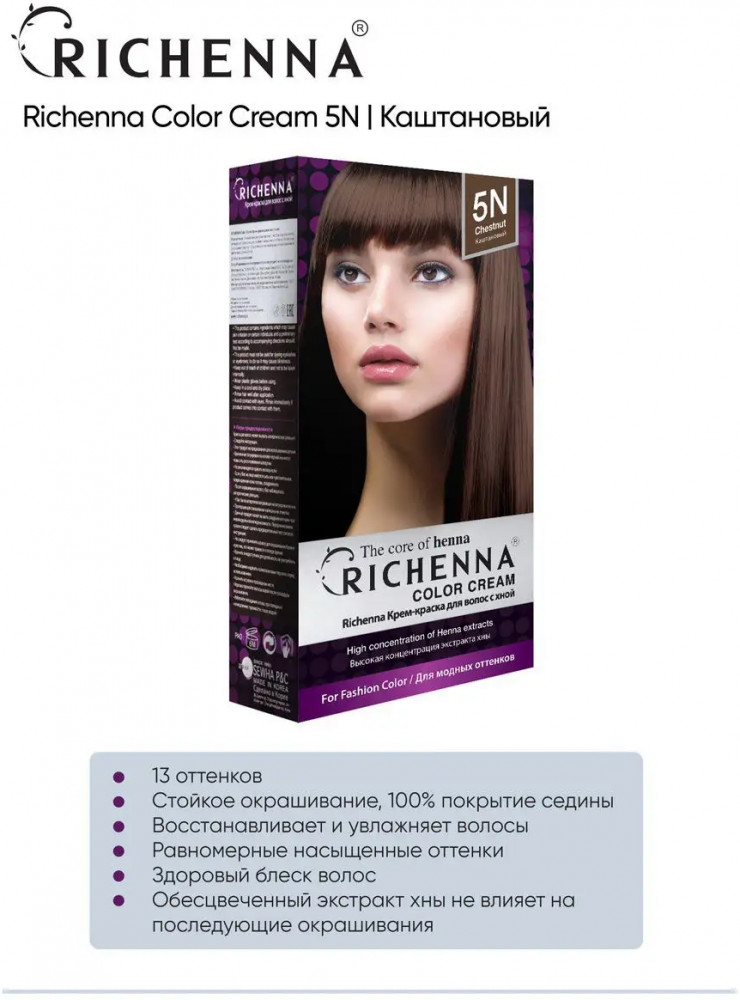 Richenna Крем-краска для волос с хной, оттенок 5N Каштановый