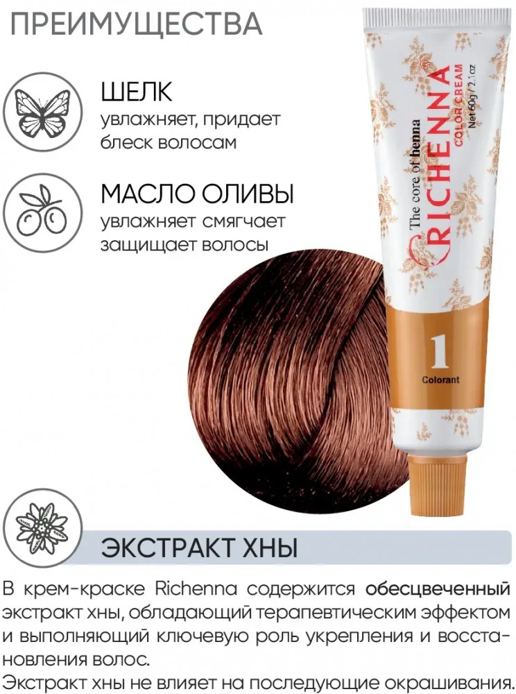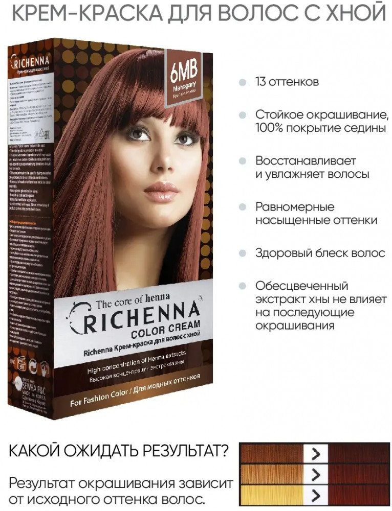 Richenna Крем-краска для волос с хной, оттенок 6MB Махагон