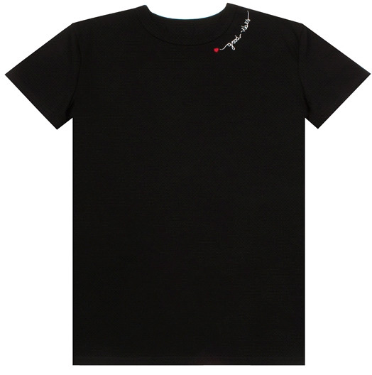 Футболка из плотного материала, не вытягивается при носке. Взяла на размер больше. При стирке вышивка не линяет.