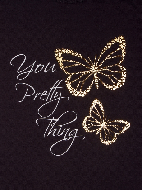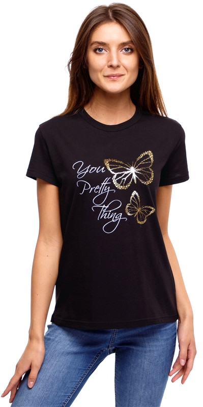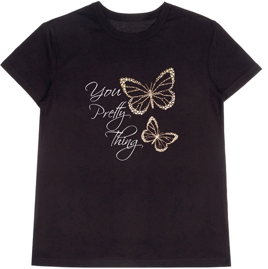 Соответствие размеру идеально, прям подошло просто шикарно!!! Спасибо Флип! Качество отличное! И нежные золотые бабочки просто восхитительны! Понравилось, что длина в самый раз! Обычно с моим ростом 157 трудно взять футболочку, чтобы не длинная была, а прям как надо)) А эта вот именно такая! Вообщем я в восторге! Жду лето)))