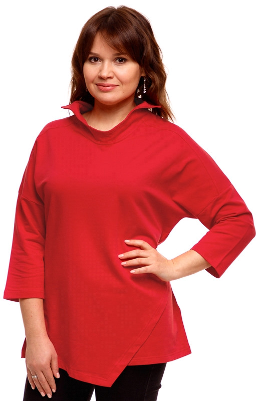 Стильная туника выполнена из теплого хлопкового полотна с лайкрой. Изделие свободного асимметричного кроя с рукавами 3/4 и воротником-стойкой. Отличный вариант на каждый день!
