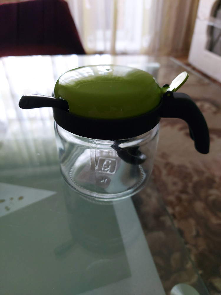 Баночка очень понравилась. Цвет получила зелёный, как и хотела. Крышка УНИВЕРСАЛЬНА, подходит на банки других объемов с резьбой. Ложки тоже можно подобрать. СУПЕР баночка. Рекомендую.