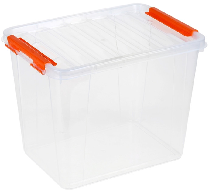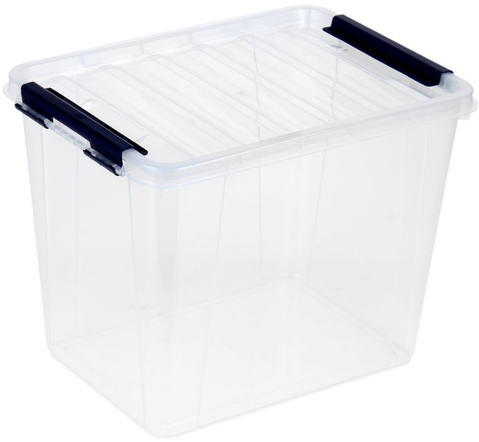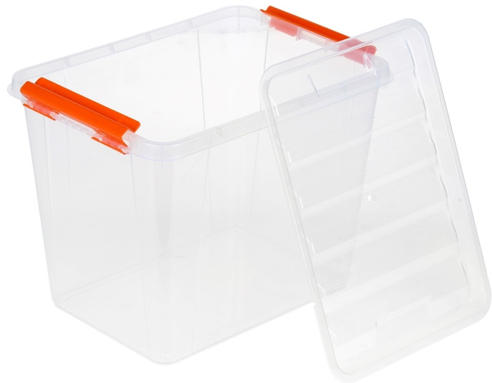 "Контейнер для хранения с крышкой" размер 40 × 29 × 18 см нам понравился. Пластик хорошего качества, контейнер прозрачный, что удобно, так как видно его содержимое. Крышка закрывается хорошо, плотно, на боковые клипсы. Клипсы у нашего контейнера тёмные синие, но мы и хотели, чтобы попал контейнер с неяркими клипсами. Закрываются клипсы натягиванием на крышку. Смотрится контейнер красиво. Вместительный. Отличный контейнер!